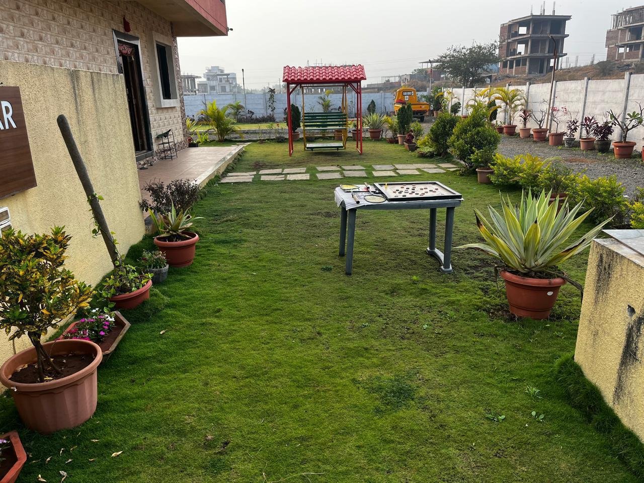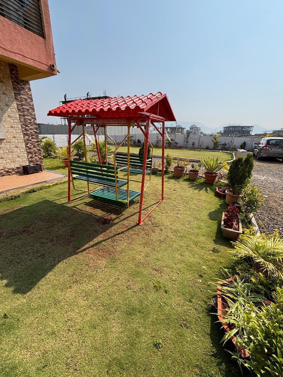 Spread across 9000 sq. ft, the villa features a large garden, private swimming pool, entertainment areas, and modern interiors designed for relaxing holidays and memorable celebrations.